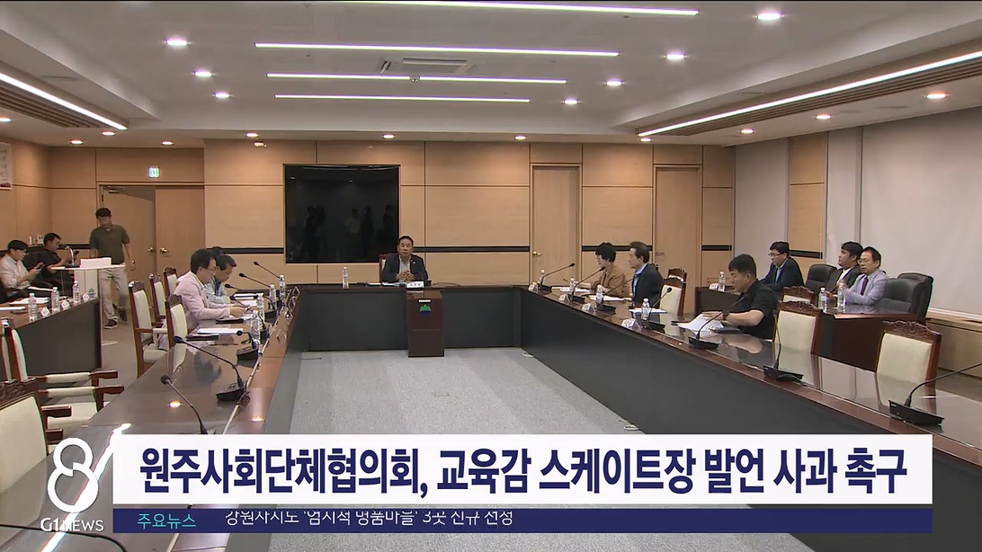 신경호 강원자치도교육감이 국제스케이트장 유치와 관련해 한 발언을 두고 원주시 사회단체 협의회가 반발하고 있습니다.