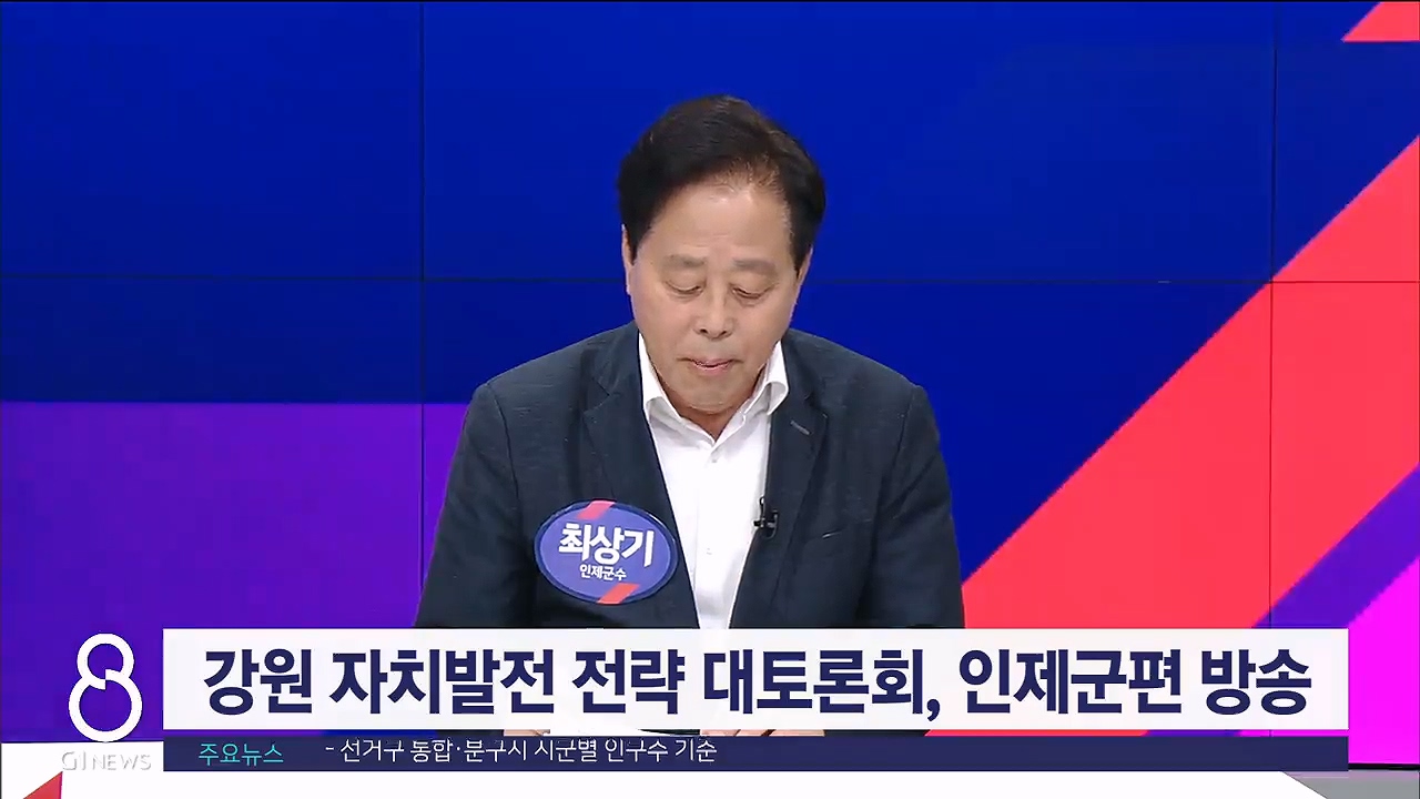 강원자치도와 도내 18개 시·군의 발전 전략을 모색해 보는 G1 생방송 '강원자치발전 전략 대토론회' 인제군편이 오늘(3일) 열렸습니다.