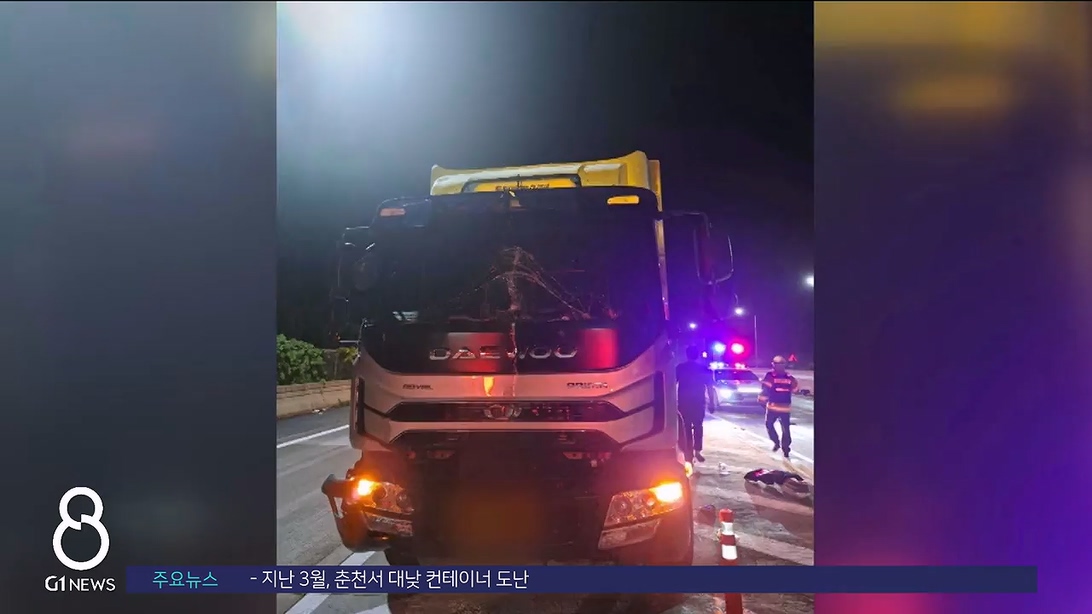 사고 이후 도로에 떨어진 적재함을 치우던 2.5톤 화물차 운전자인 60대 남성이 뒤따르던 25t 화물차에 치여 숨졌습니다.