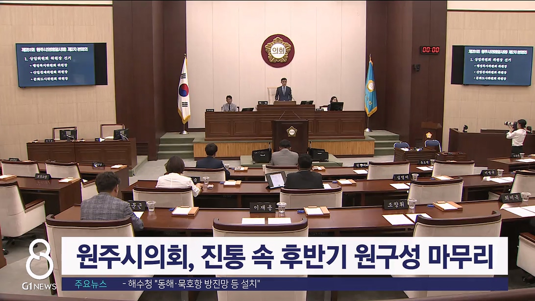 원주시의회가 국민의힘 의원들의 보이콧 등 진통 속에 후반기 원구성을 모두 마무리했습니다.