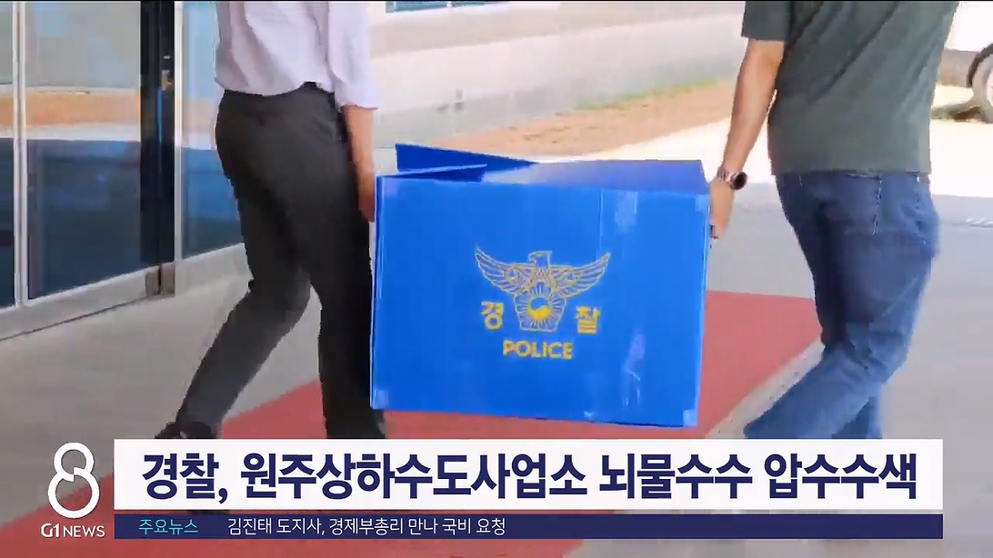 경찰이 원주시 상하수도사업소 직원의 뇌물수수 의혹을 조사하기 위해 오늘(10일) 압수 수색을 벌였습니다.