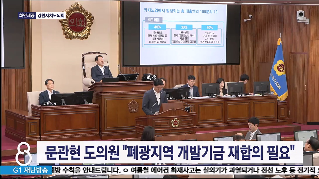 문관현 도의원은 오늘(10일) 5분 발언을 통해 "2005년 이후 변동이 없었던 폐광지역 개발기금 배분 비율에 대한 재합의가 이뤄져야 한다"며,