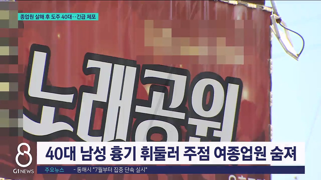오늘(10일) 새벽, 동해의 한 노래주점에서 40대 남성이 흉기를 휘둘러 여성 종업원이 숨졌습니다.