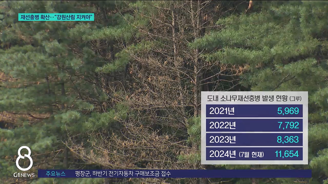 춘천과 홍천 등 영서권을 중심으로 번지고 있고, 올해 감염목은 만 그루를 훌쩍 넘겼습니다.
