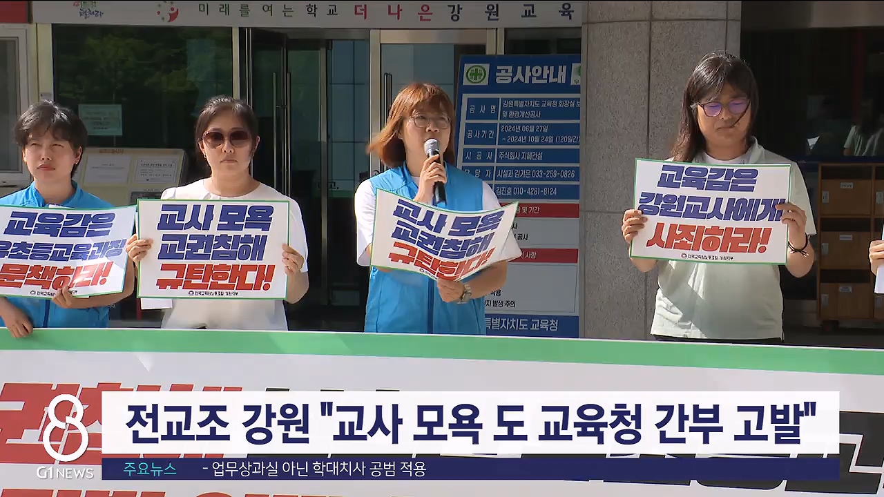 전교조 강원은 오늘(15일) 도 교육청 앞에서 기자회견을 열고 "지난 9일 춘천에서 초등생 학부모를 대상으로 열린 연수에서 초등교육 담당 A과장이 대놓고 교사들을 모욕했다"고 비판했습니다.