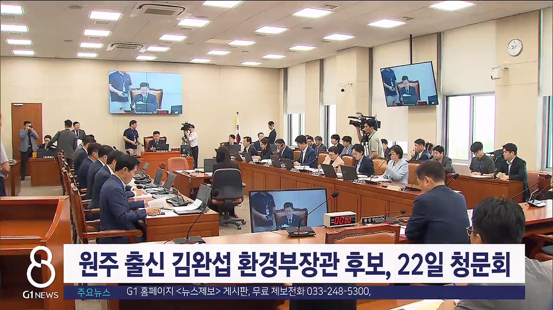 원주 출신 김완섭 환경부장관 후보자에 대한 인사청문회가 오는 22일 열립니다.