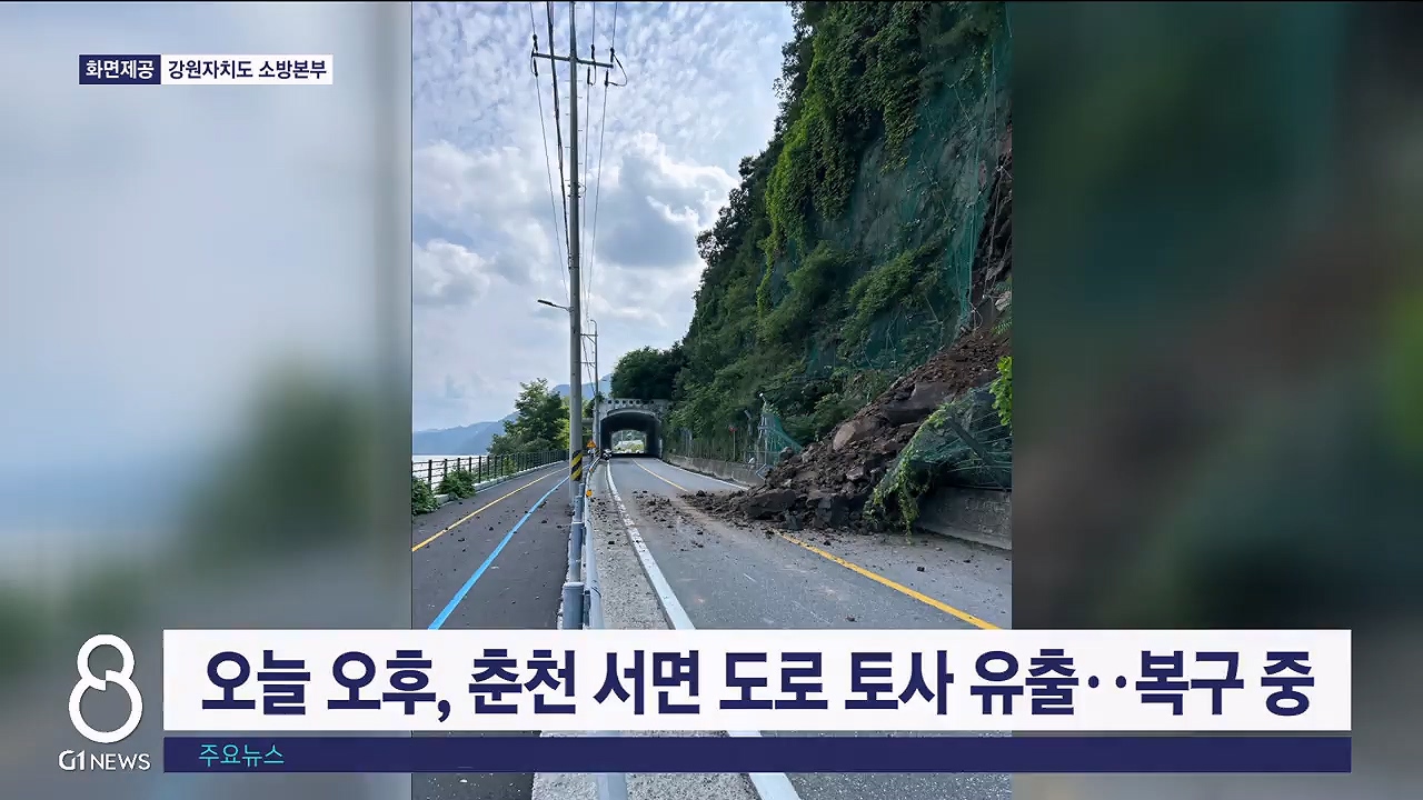 오늘 오후, 춘천 서면 도로 토사 유출..복구 중