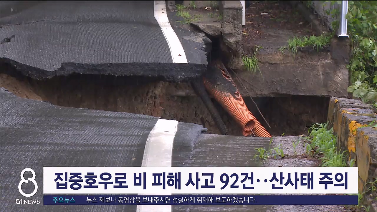 강원자치도 소방본부에 따르면, 지난 16일부터 오늘 오전 6시까지 강원 지역에선 낙석과 나무 쓰러짐, 도로유실 등 총 92건의 비 피해 사고가 발생했습니다.