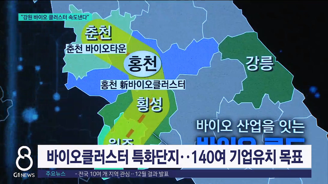 바이오 클러스터는 춘천과 홍천에 기업과 연구기관을 비롯해 바이오 산업을 집적화하는게 핵심입니다.