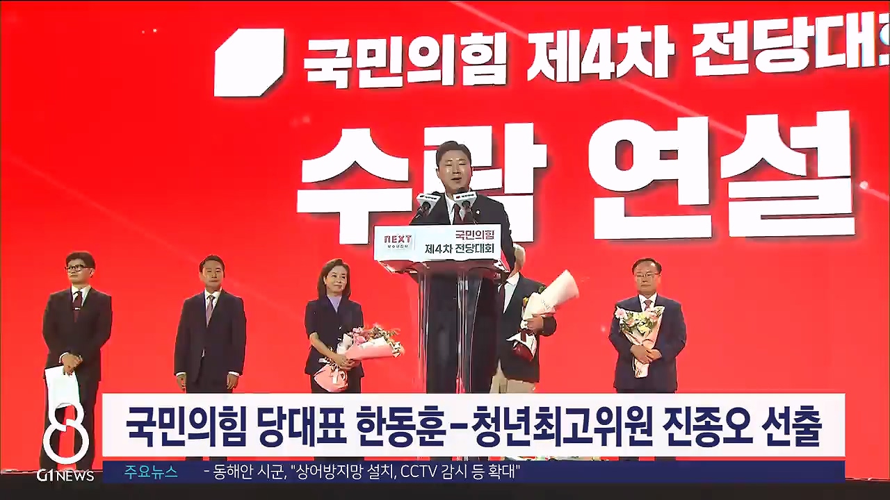 오늘 국민의힘 전당대회에서 당대표에 한동훈 후보가, 청년최고위원에는 춘천 출신 진종오 의원이 선출됐습니다.
