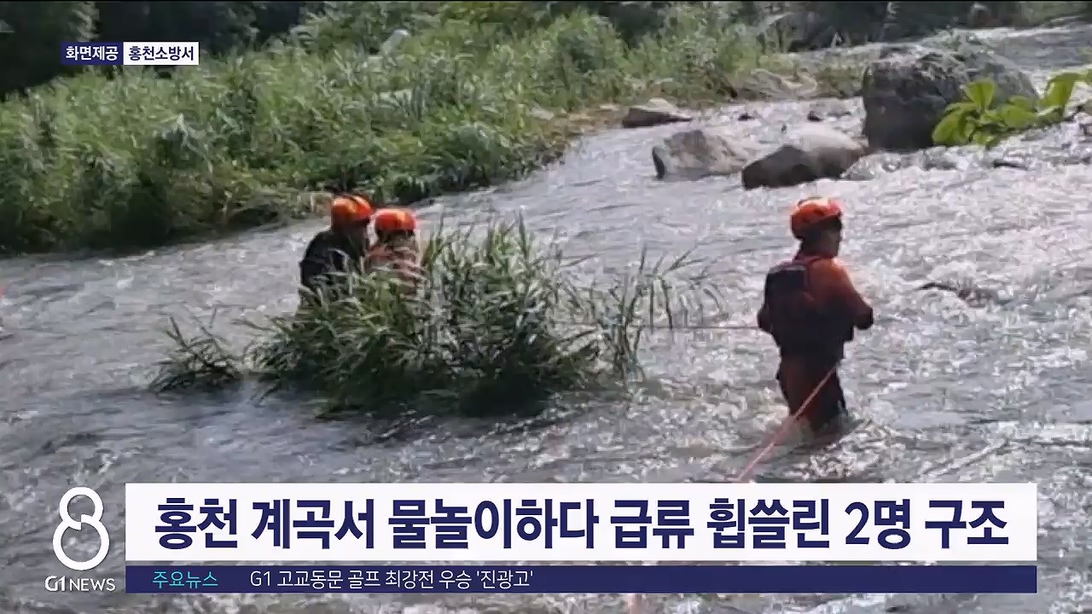 홍천 계곡서 물놀이하다 급류 휩쓸린 2명 구조
