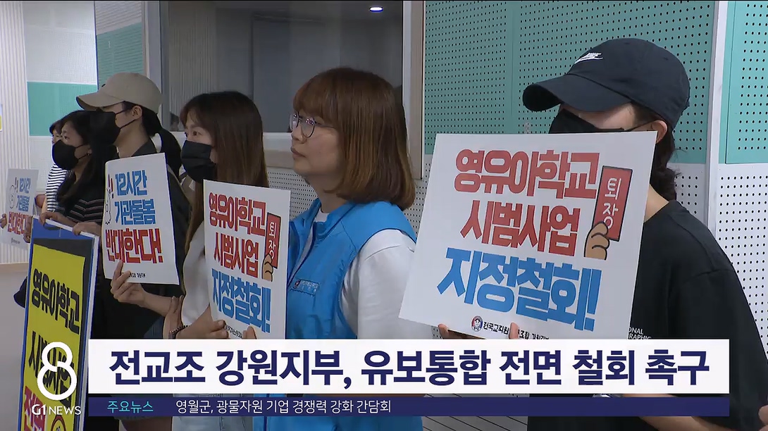 강원자치도교육청이 내년부터 시행될 예정인 유보통합에 앞서 시범사업에 나선 가운데 전국교직원노동조합 강원지부가 정책 철회를 촉구하고 나섰습니다.