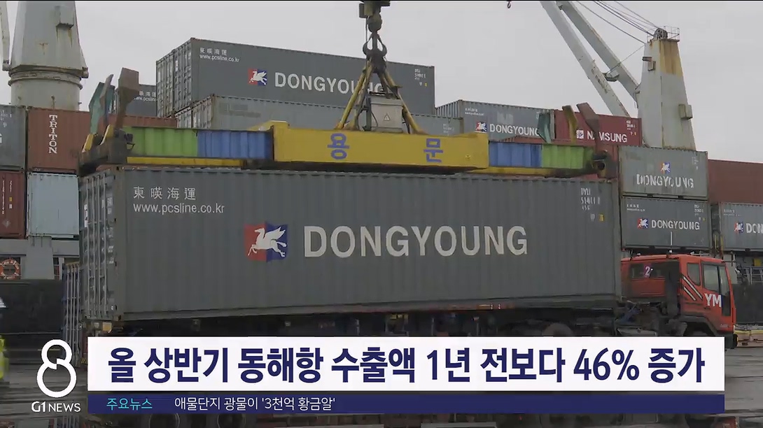 올해 상반기 동해항 수출액이 5억 5만 달러를 기록하면서 지난해 같은 기간보다 46.4% 증가했습니다.