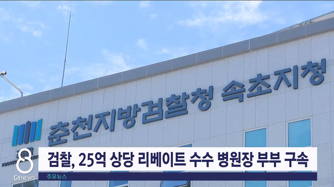 춘천지검 속초지청은 의약품 납품 대가로 약 25억 원 상당의 리베이트를 받은 종합병원장 A씨와 재무이사인 병원장 아내 B씨를 의료법 위반과 배임 수재 혐의로 구속 기소했습니다.