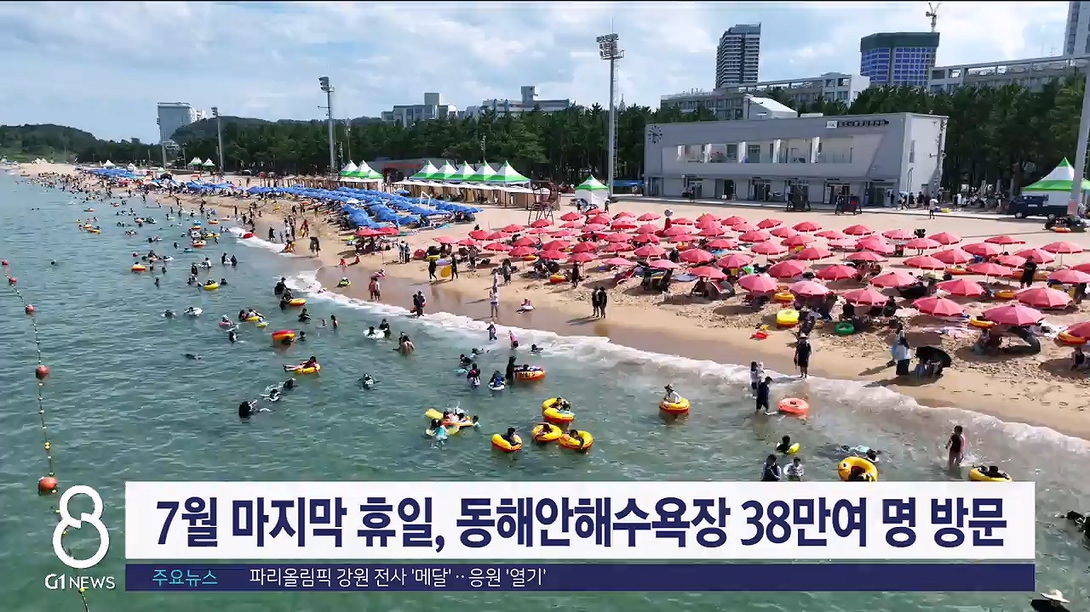 강원특별자치도 글로벌본부에 따르면 오늘 강릉 경포와 양양 낙산을 비롯한 동해안 해수욕장에는 모두 38만 2백여명이 방문해 무더위를 식혔습니다.