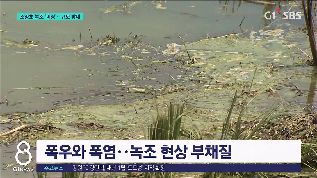 최근 장마와 폭염이 기승을 부리면서 소양강 상류에 올해 첫 녹조가 발생했습니다.