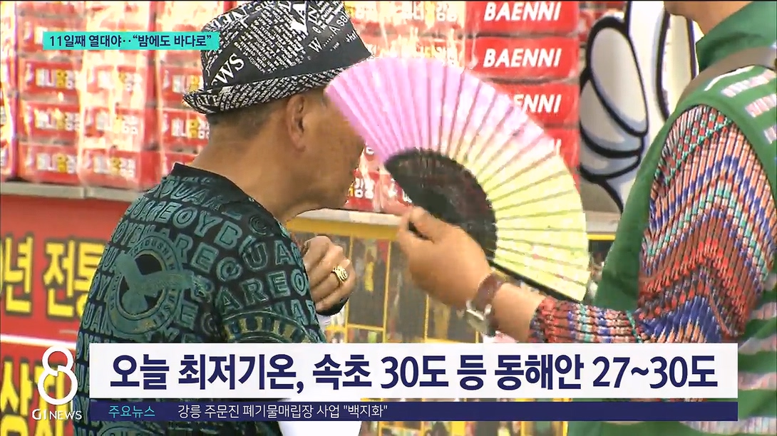 특히 강릉은 지난 19일부터 11일 연속, 속초와 삼척도 전날 오후 6시부터 다음날 오전 9시까지 25도 이상 기온이 유지되는 열대야가 열흘째 계속됐습니다.