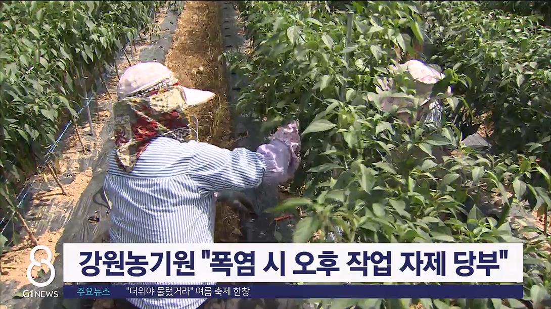 강원농기원은 온열질환 시 즉시 작업을 멈추고 119에 신고한 뒤 그늘로 피해 체온을 낮추는 조치를 해야 한다고 당부했습니다.
