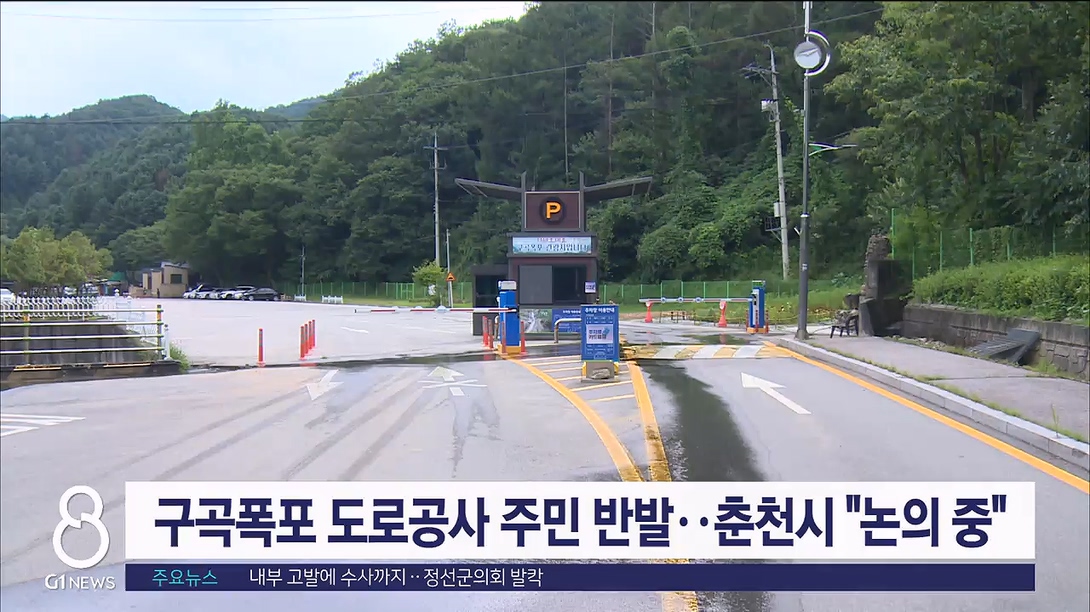 구곡폭포 도로공사 주민 반발..춘천시 "논의중"