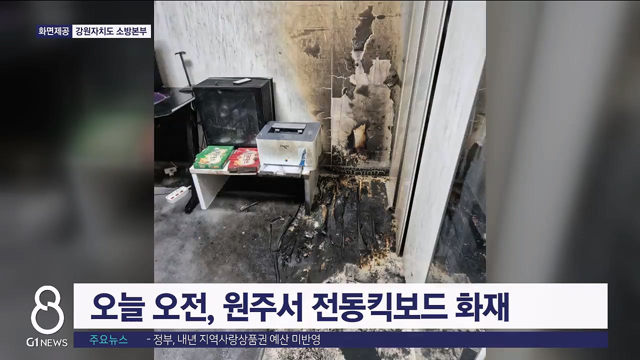 오늘 오전 2시 30분쯤, 원주시 지정면의 한 아파트 안에 세워놓은 전동킥보드에서 불이 났습니다.