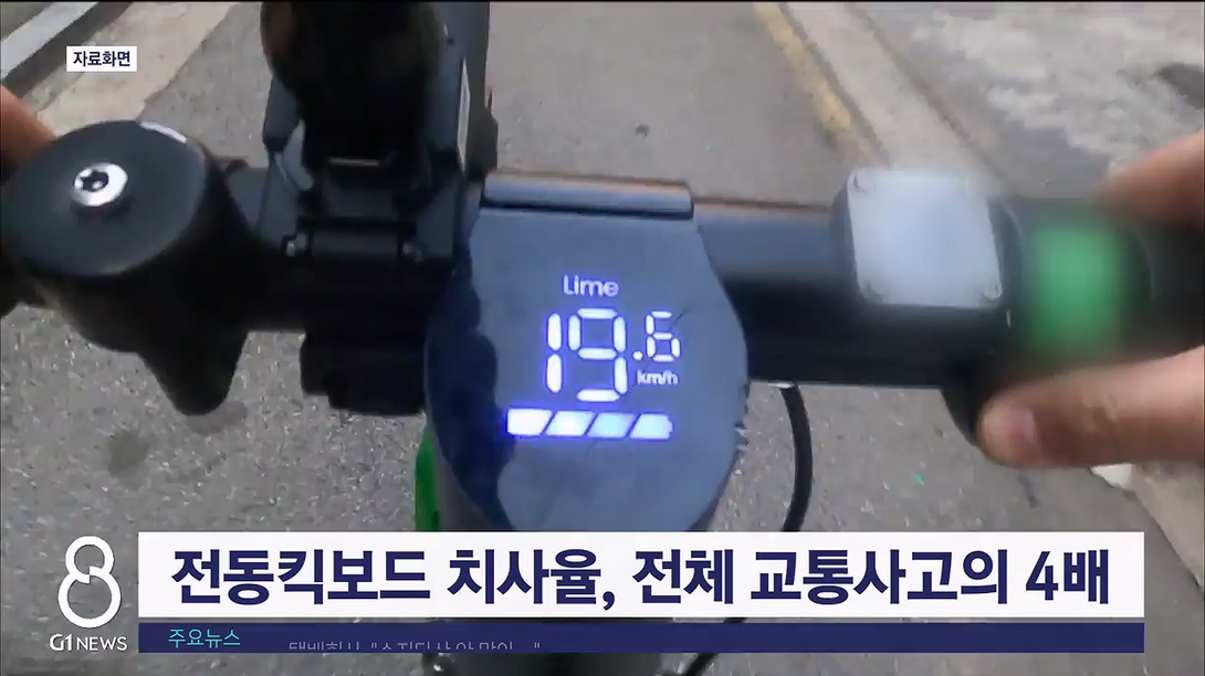 전동킥보드와 전기자전거 등 개인형 이동장치의 단독사고 치사율이 전체 교통사고 치사율보다 4배 정도 높은 것으로 나타났습니다.