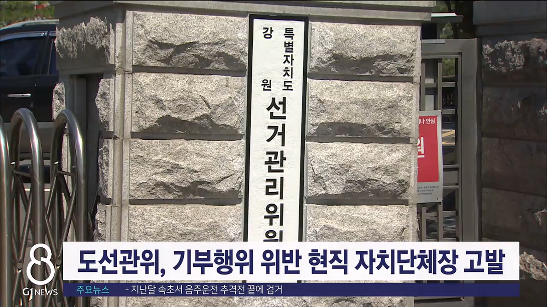 강원자치도 선거관리위원회가 공직선거법상 기부행위 위반 혐의로 현직 자치단체장 A씨를 검찰에 고발했다고 밝혔습니다.