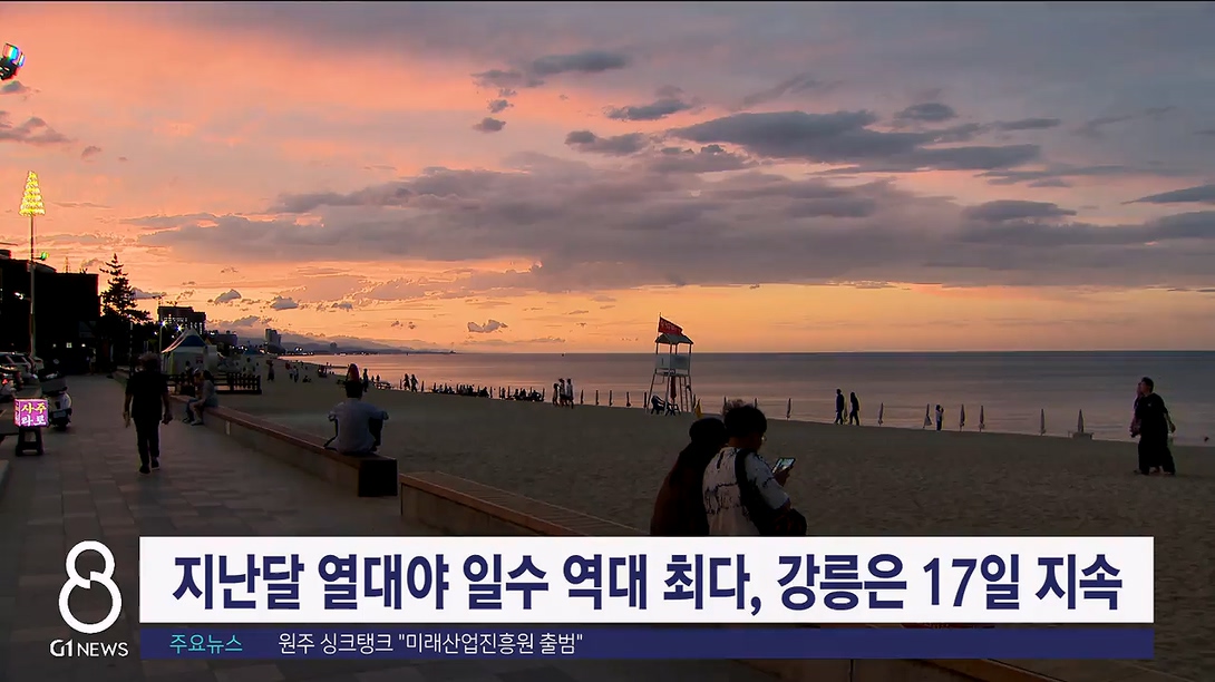 특히, 강릉에서는 지난 한 달 동안 17일간 열대야가 발생했고, 속초는 14일, 원주는 9일 동안 열대야가 나타난 것으로 집계됐습니다.