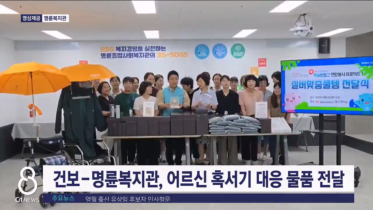 건보-명륜복지관, 지역 어르신 혹서기 대응 물품 전달