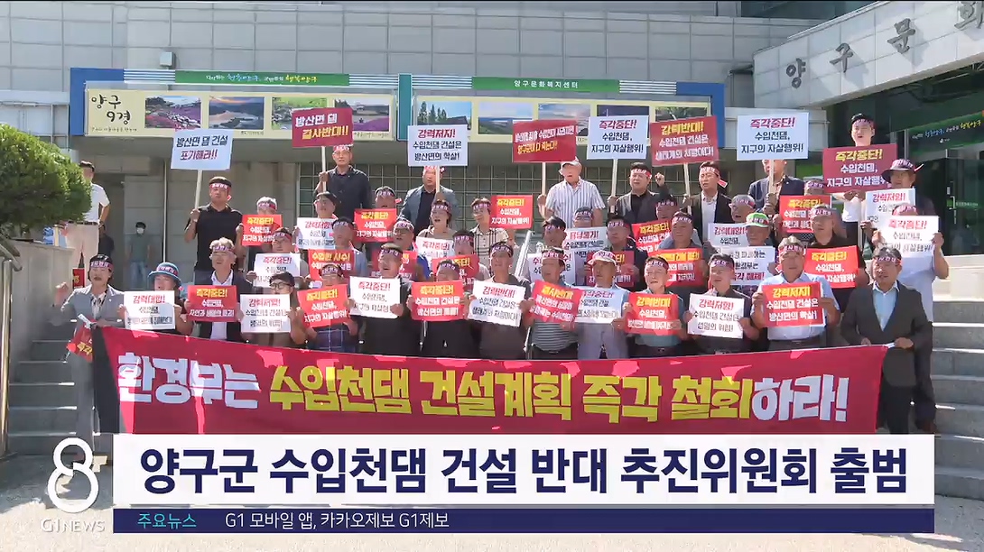 양구군은 오늘(9일) 양구문예회관에서 수입천댐 건설 반대 추진위원회 창립총회를 열고 강경 투쟁을 예고했습니다.