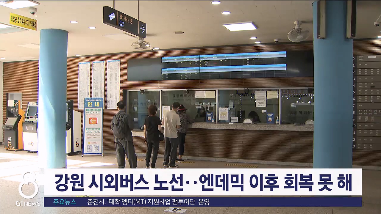 코로나19 엔데믹 이후에도 도내 시외버스 노선이 1년 이상 회복되지 못하고 있는 것으로 나타났습니다.