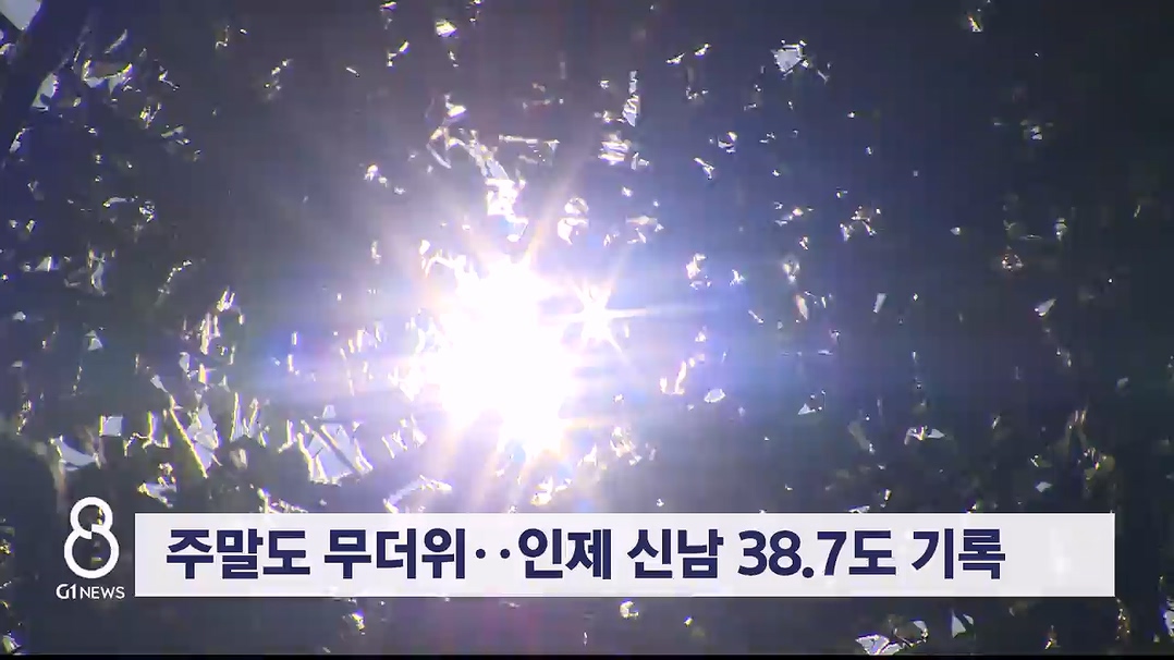 기상청에 따르면 오늘 도내 최고기온은 인제 신남 38.7도, 춘천 신북 36.2도, 양구 35.9도, 영월과 홍천 화촌, 화천 평화가 35.7도를 기록했습니다.