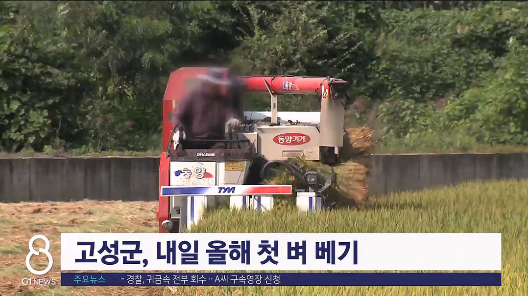 내일(19일) 간성읍 교동리에서 올해 첫 벼 베기에 나선다고 밝혔습니다.