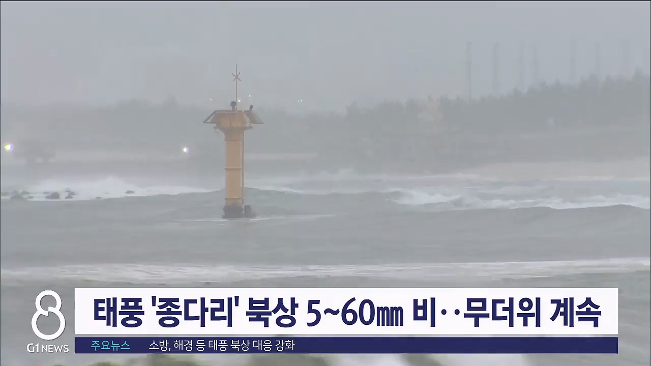 태풍 '종다리' 북상 5~60mm비..무더위 계속
