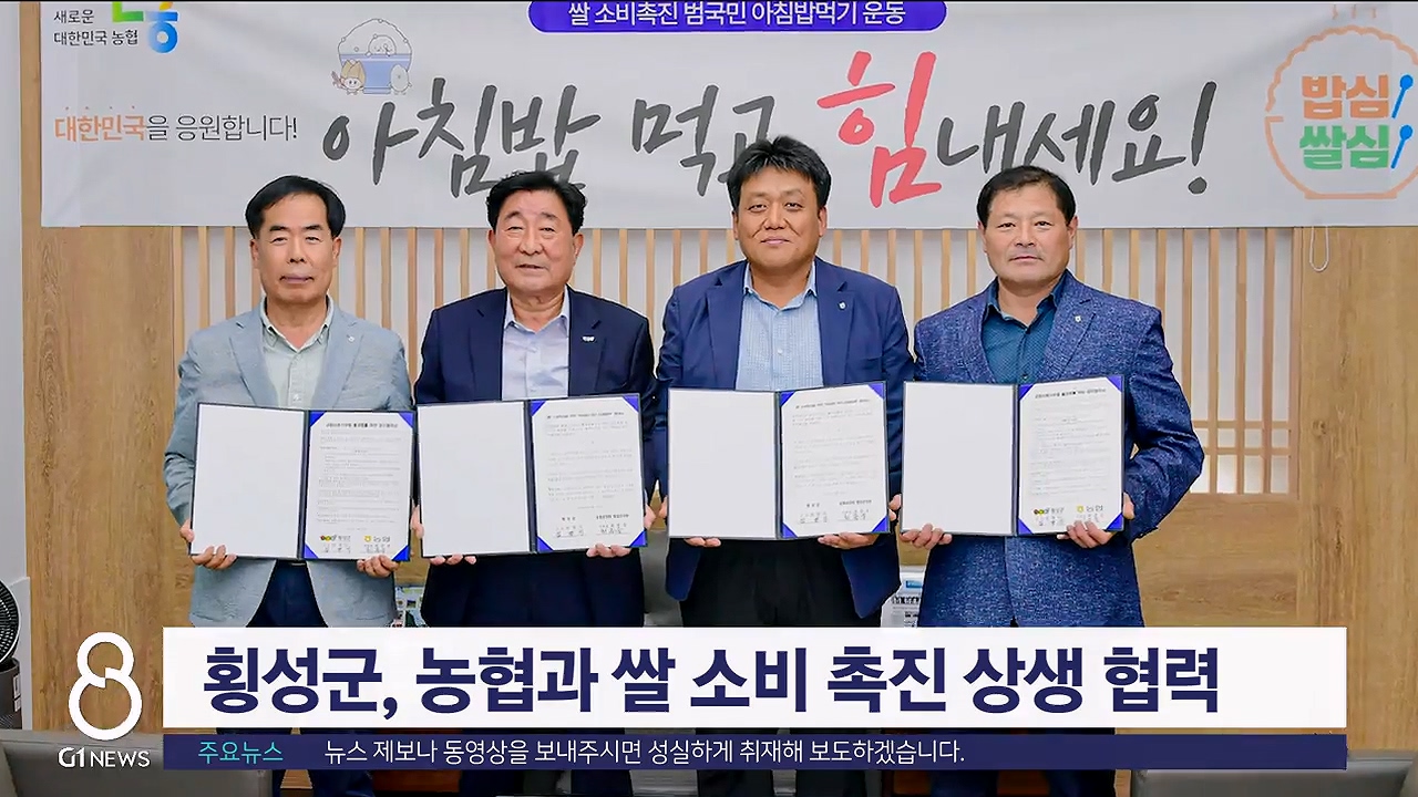 횡성군이 오늘(22일) 농협 횡성군지부와 쌀 소비 촉진을 위한 아침밥 먹기 상생 협력 업무협약을 체결했습니다.