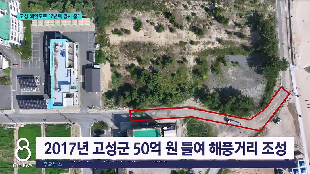 도로 조성에 필요한 인근 리조트 소유 토지 매입에 실패하면서 일부 구간이 수년째 방치돼 있습니다.