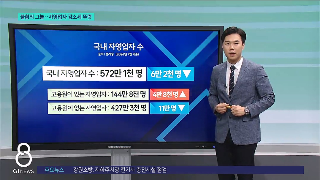 지난달 강원자치도 자영업자 수는 20만 9천 명으로 지난해 같은 기간에 비해 천 명 가량 줄었습니다.