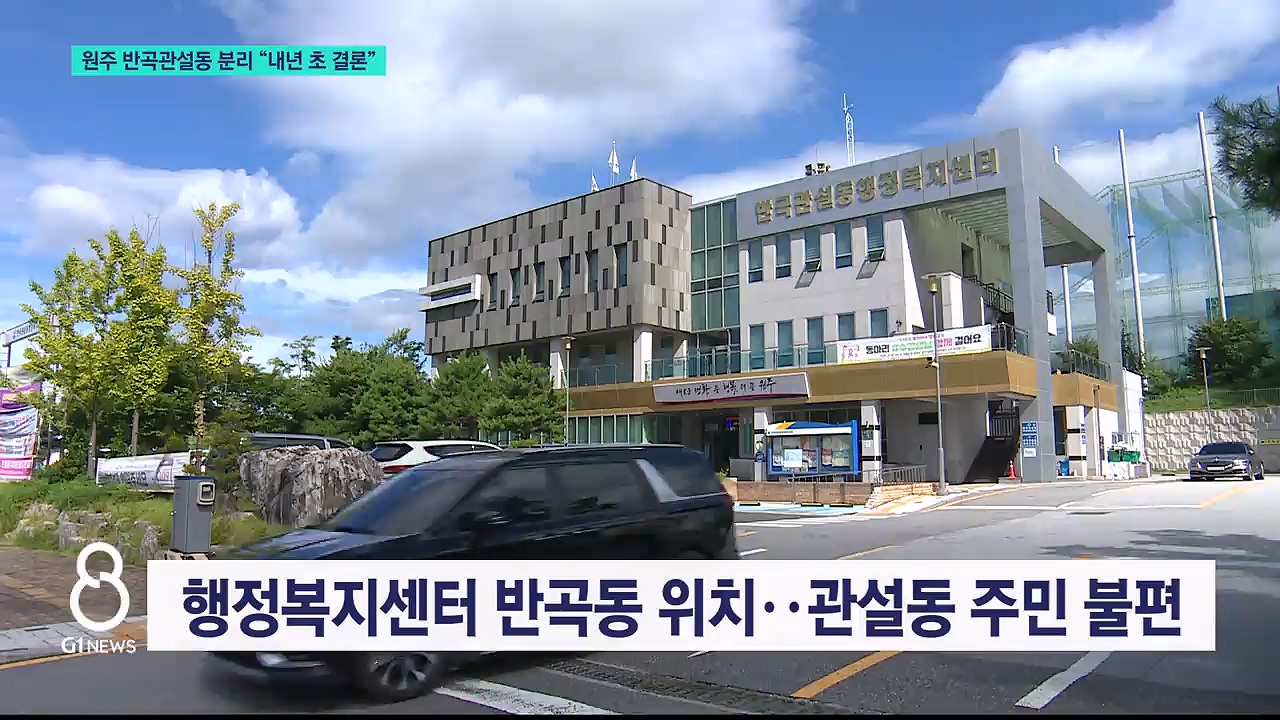 원주시가 반곡동과 관설동을 다시 분리하는 행정구역 개편을 검토하고 있습니다.