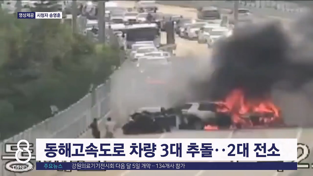 오늘(25일) 낮 11시 30분쯤 삼척~속초 동해고속도로 속초 방면 노학2교에서 차량 3대가 잇따라 충돌했습니다.
