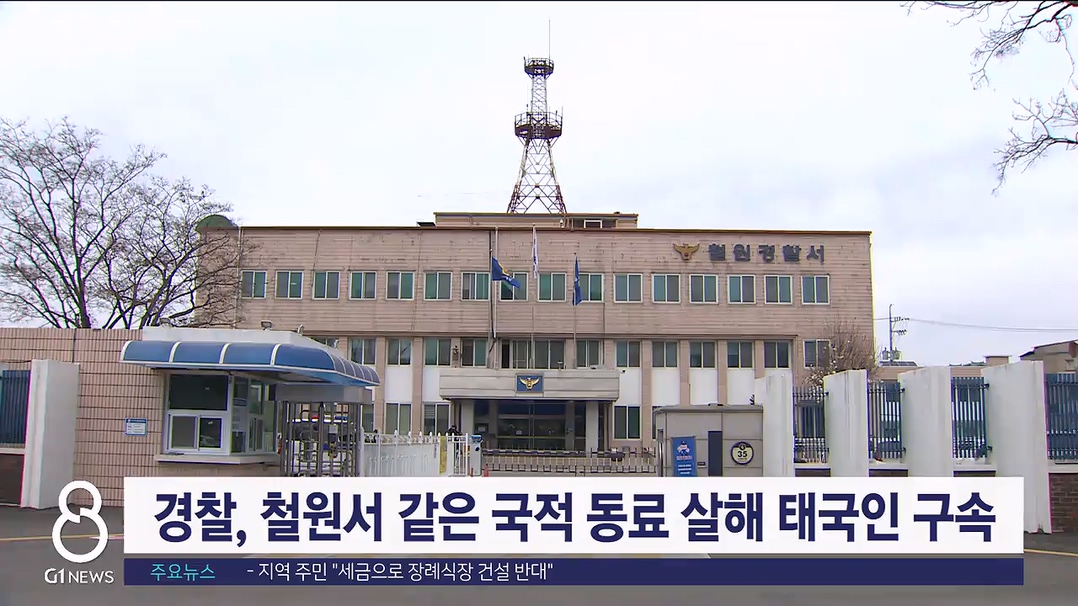 철원에서 같은 국적의 동료에게 흉기를 휘둘러 숨지게 한 태국 국적 20대 A씨가 어제(25일) 살인 혐의로 구속됐습니다.