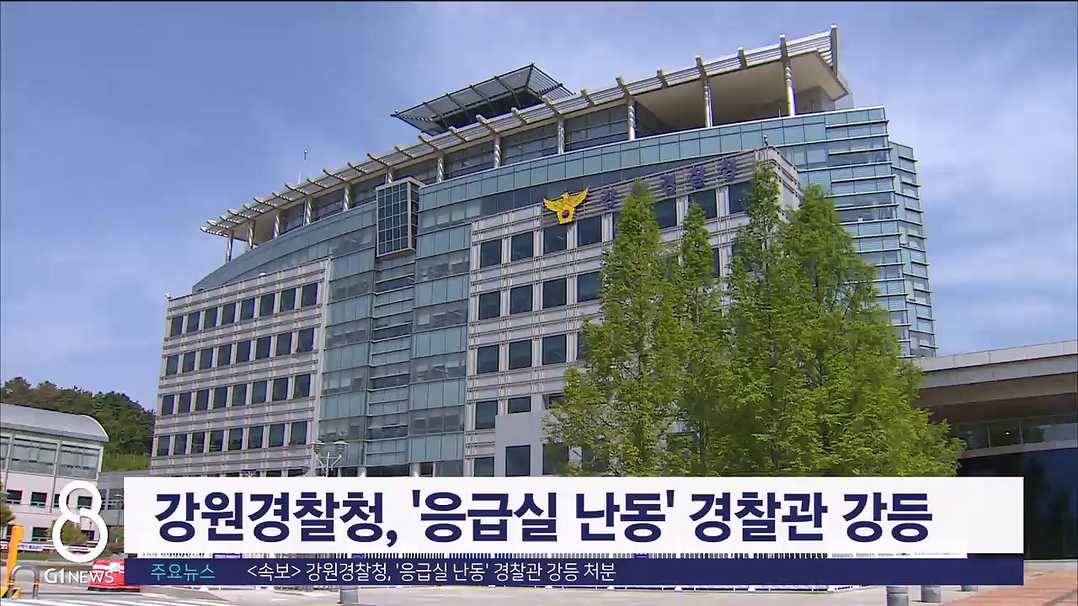 G1뉴스가 지난 6월 보도한 현직 경찰관 응급실 난동 사건과 관련해 강원경찰청이 해당 경찰관에게 강등 처분을 내렸습니다.