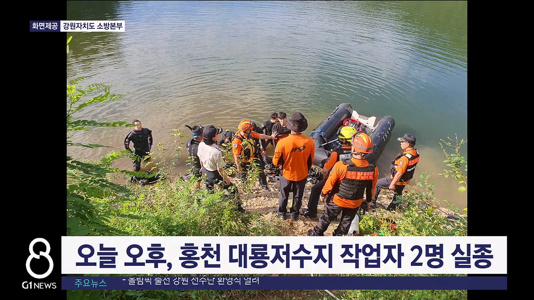 오늘 오후 2시 54분쯤 홍천군 대룡저수지에서 작업자 2명이 물에 빠져 실종됐습니다.