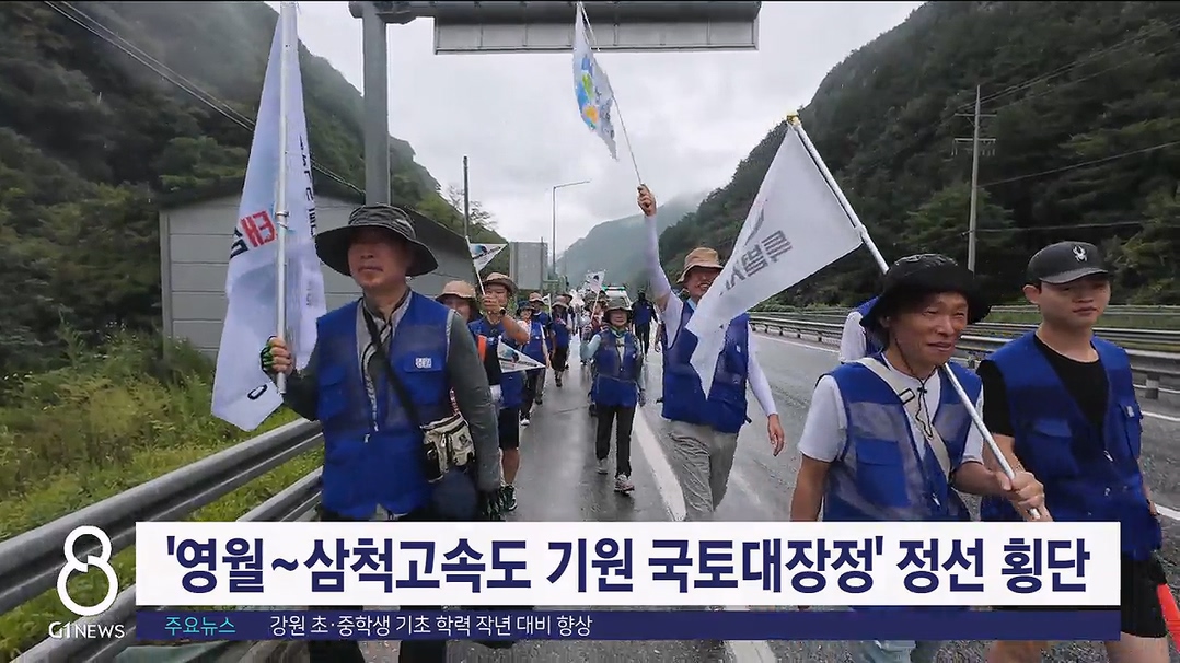 영월~삼척 고속도로 조기 착공을 촉구하며 국토대장정에 나선 행렬이 행사 이틀째인 오늘(27일) 영월군을 통과해 정선군 일대를 걸었습니다.