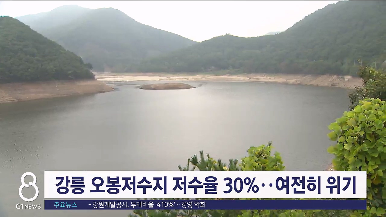 강릉시와 한국농어촌공사에 따르면 취수원인 오봉저수지의 저수율은 전날 내린 비의 영향으로 전날보다 0.6% 오른 30%를 기록했습니다.