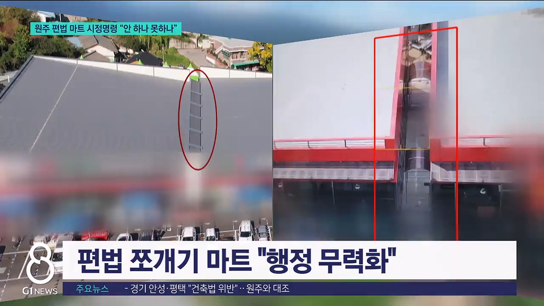 남) G1 뉴스에서는 지난 3월 원주에 잇따라 들어선 편법 쪼개기 마트의 문제점에 대해 집중 보도해 드렸는데요.