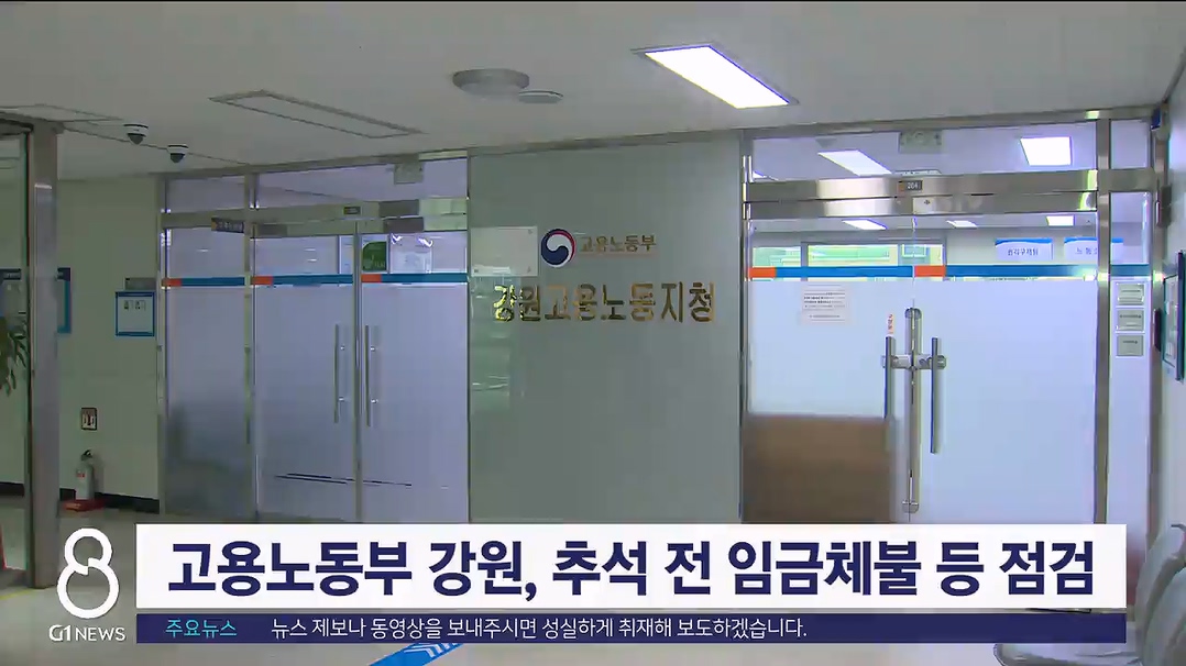 고용노동부 강원, 추석 전 임금체불 점검