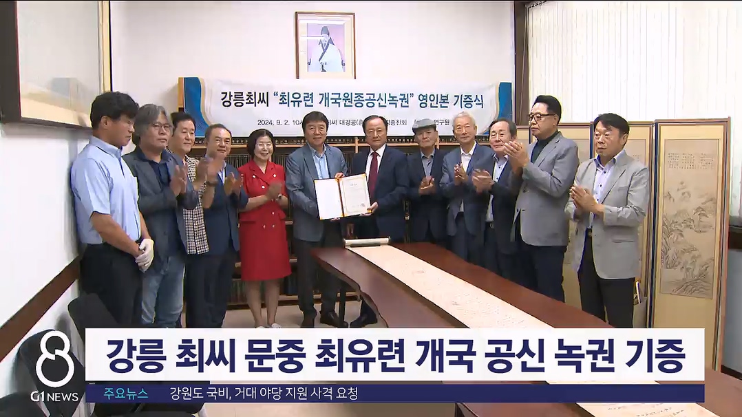 강릉 최씨 대경공계 재경종친회는 강릉 율곡문화진흥원에 '최유련 개국원종공신 녹권'을 기증했습니다.