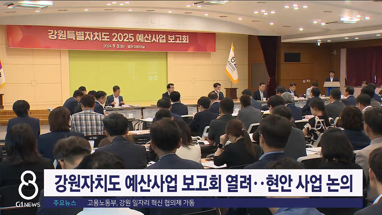 2025년도 강원자치도 예산사업 보고회가 오늘(3일) 김진태 도지사와 행정.경제부지사, 실국장이 참석한 가운데 도청 대회의실에서 열렸습니다.