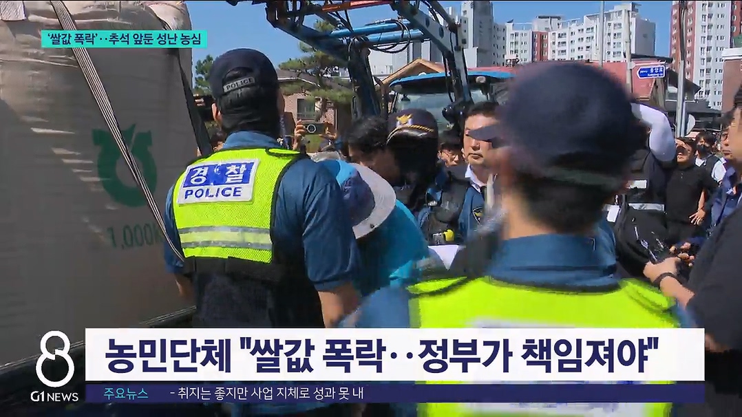 "작년 10월에 21만 원 받은 쌀값이 현재 17만 원대로 떨어졌습니다. 쌀값은 역대급으로 폭락할 거라고 예견이 돼었던 거고요. 정부는 저희 목소리에 하나도 귀 기울이지 않고.."