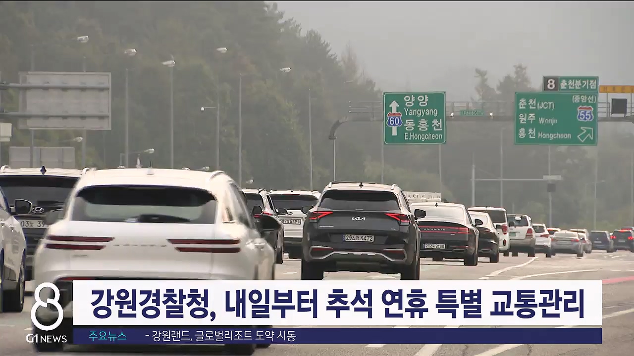 강원경찰청이 추석 연휴기간 귀성·귀경 차량의 원활한 소통과 교통사고 예방을 위해 내일(6일)부터 오는 18일까지 특별 교통관리에 나섭니다.