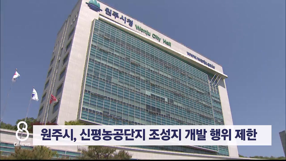 원주시가 농공단지 조성 예정지인 지정면 신평리 일대 34만㎡ 부지를 개발행위허가 제한지역으로 지정·고시했습니다.